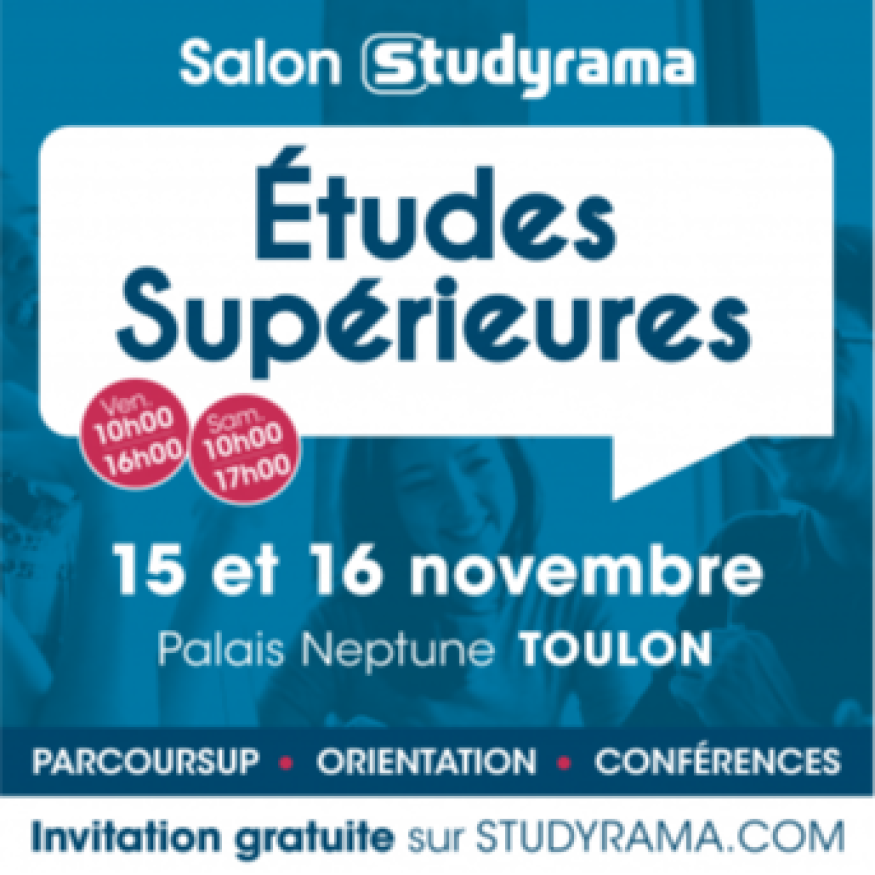Venez participer au "Salon Studyrama des Études Supérieures" les 15 et 16 novembre à Toulon !
