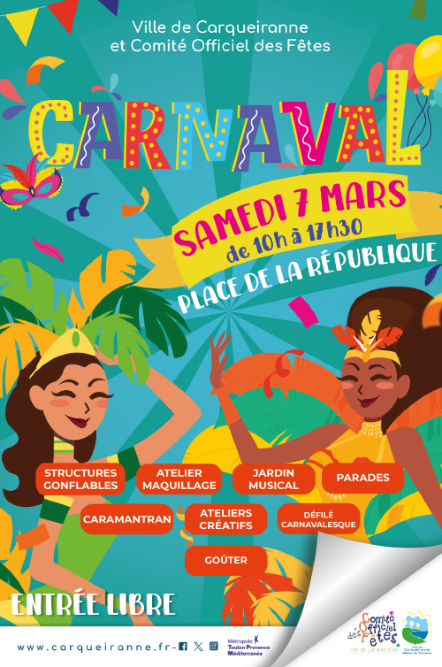 Rendez-vous le samedi 07 mars sur la place de la République pour participer au Carnaval organisé par la Ville.