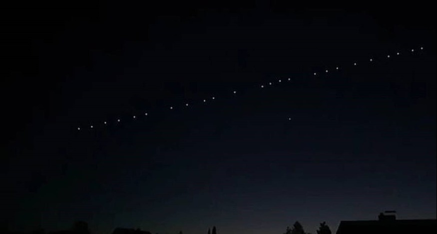 Et la Néoulaise joins deux photos sur lesquelles on aperçoit, en effet, un alignement de points blancs dans le ciel.