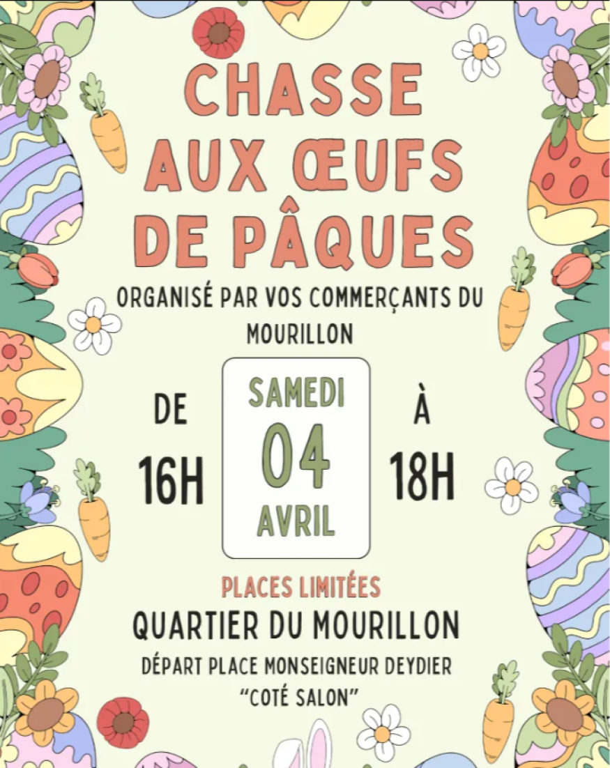 À l’issue de la brocante, une chasse aux œufs est proposée aux enfants du quartier par les commerçants du Mourillon. Des œufs contenant des lettres sont cachés chez les commerçants : aux enfants de les retrouver pour reconstituer le mot secret.