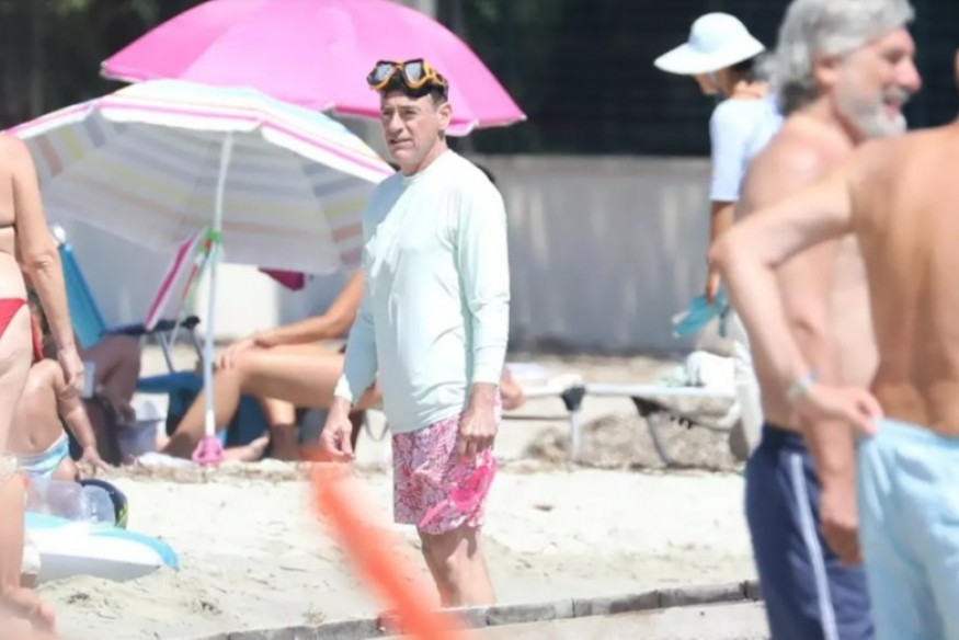 Après un déjeuner à Jardin Tropezina, le super papa a enchaîné les activités: châteaux de sable avec sa fille, plongeons à tout va et applaudissements des acrobaties de ses enfants. À la cool, sans se prendre la tête.