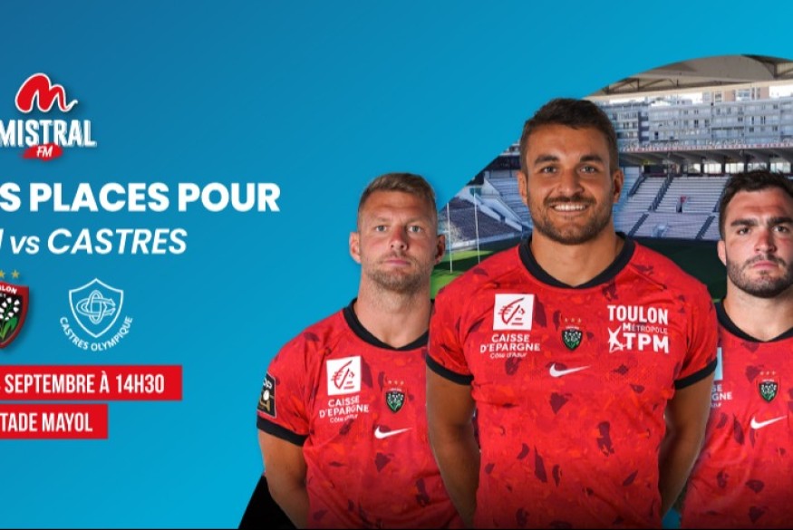 Mistral FM, la radio officielle du Rugby Club Toulonnais t'invite au premier match de la saison TOP 14 à domicile des Rouge et Noir face au Castres Olympique le samedi 14 septembre à 14H30 au Stade Mayol !