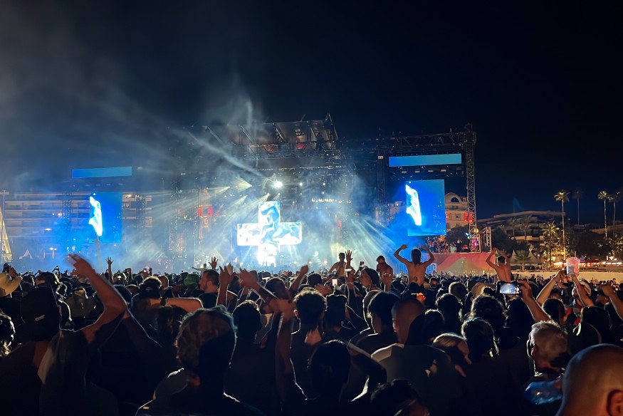 Kungs a chauffé la piste principale située à côté du palais des festivals, directement posée sur la plage. Le public était au rendez-vous pour ce festival incontournable du sud qui n'a pu avoir lieu l'année dernière et qui affiche complet.