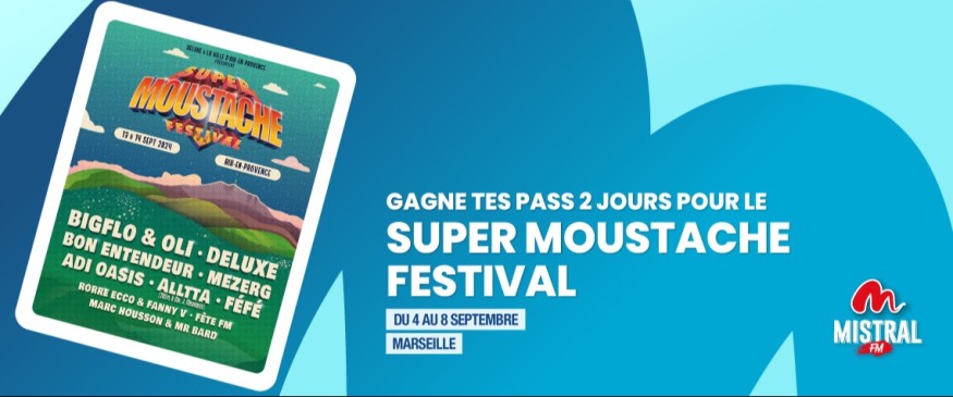 Mistral FM t'invite au Super Moustache Festival les 13 & 14 septembre 2024 à Aix-en-Provence avec Bigflo & Oli, Deluxe, Bon Entendeur et de nombreux autres artistes !